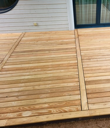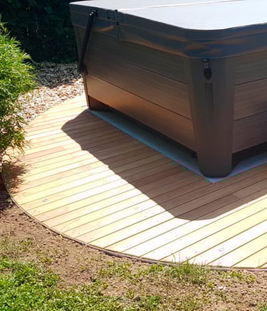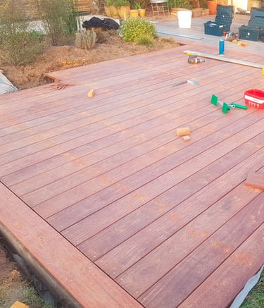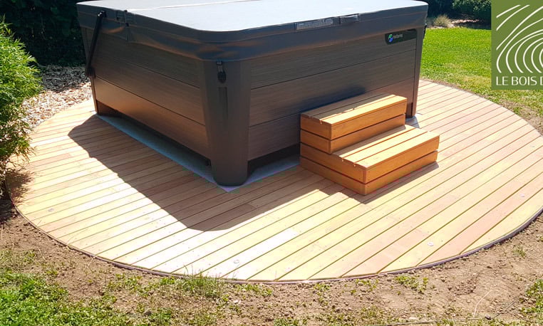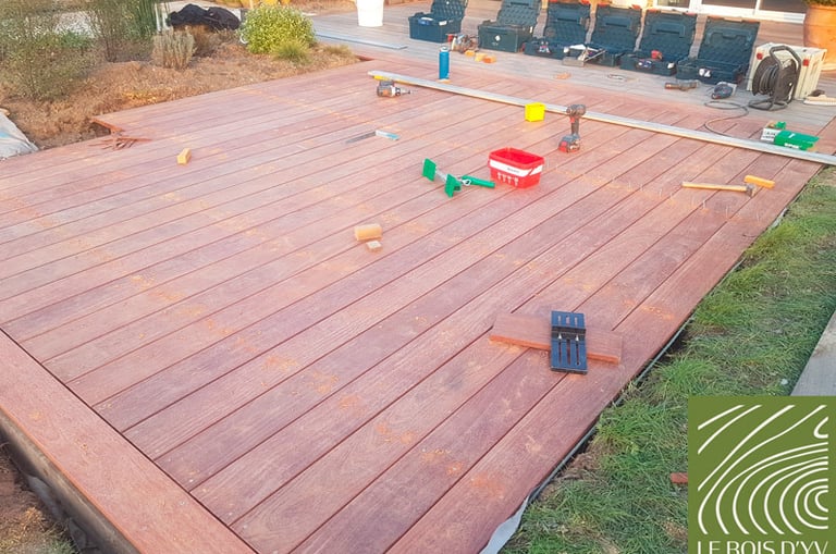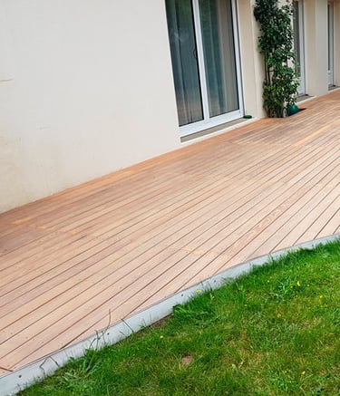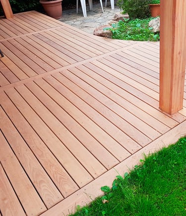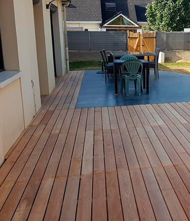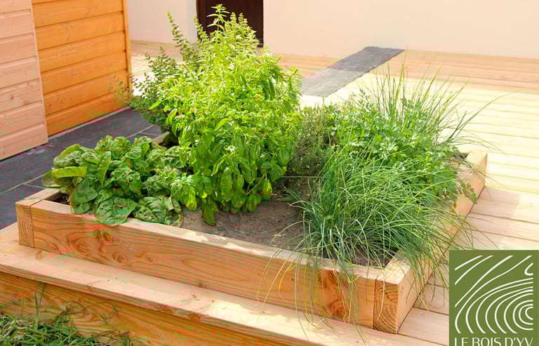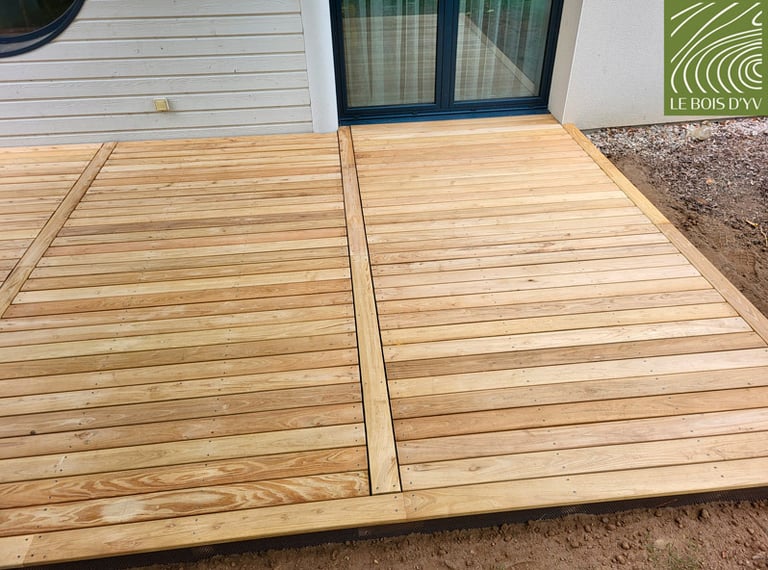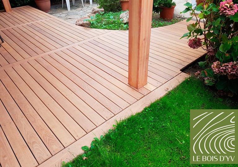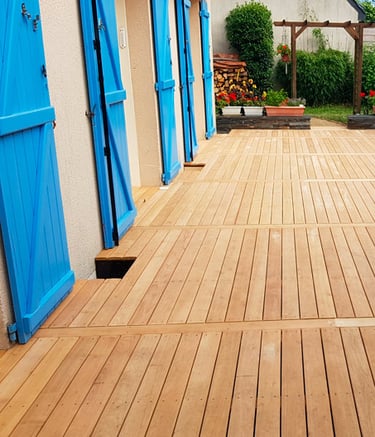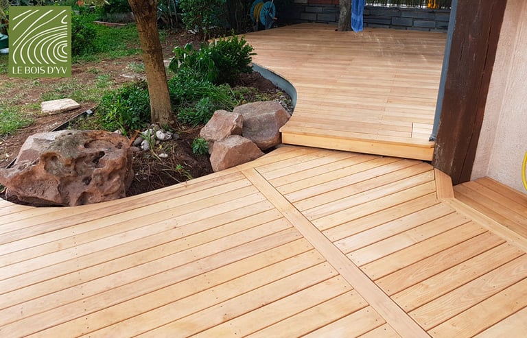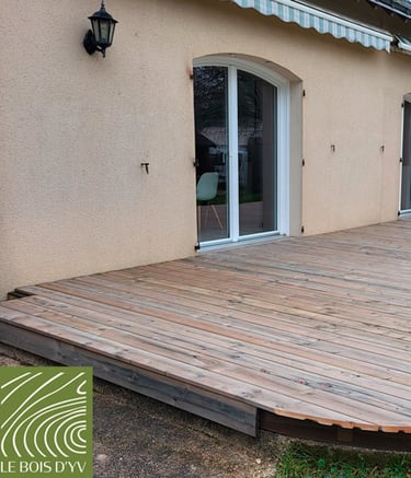 Les terrasses sont généralement réalisées en bois locaux : robinier faux acacia, pin Douglas, châtaignier...
